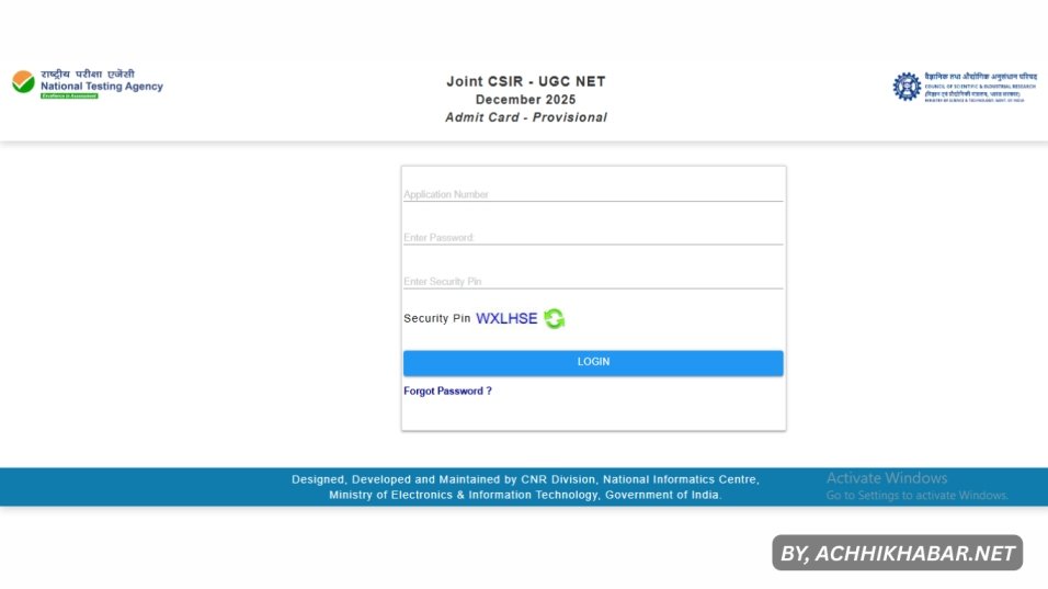 - होमपेज पर “Download Admit Card for Joint CSIR-UGC NET December 2025” लिंक क्लिक करें।