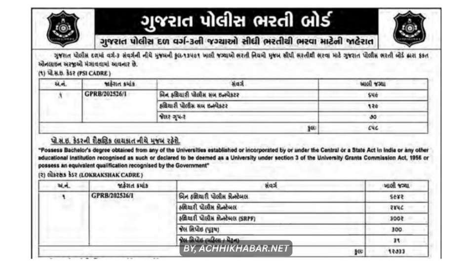 नमस्कार दोस्तों, achhikhabar.net में आपका फिर से स्वागत है! अगर आप गुजरात में सरकारी नौकरी की तलाश कर रहे हैं और पुलिस की वर्दी पहनने का सपना देखते हैं, तो ये खबर आपके लिए गोल्डन ऑपर्चुनिटी है!