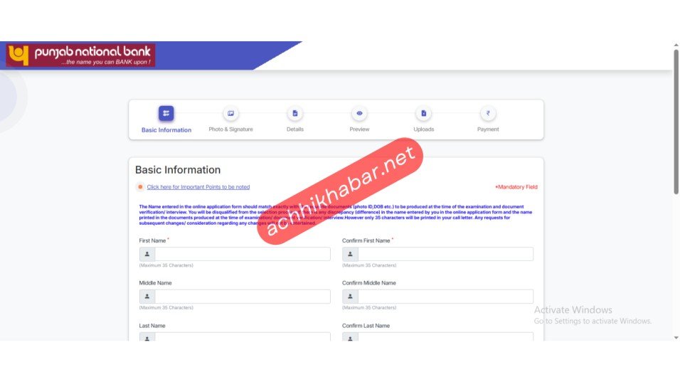 - ऑफिशियल वेबसाइट या Link पर जाएं: सबसे पहले, PNB की आधिकारिक वेबसाइट पर जाएँ या Achhikhabar.net पर दिए गए “Apply Online” के Direct Link पर क्लिक करें।