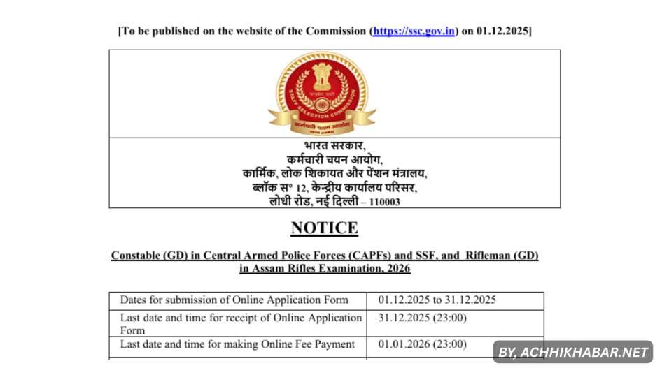 नमस्कार! achhikhabar.net में आपका फिर से स्वागत है। आज की ये खबर उन हजारों युवाओं के लिए है जो सरकारी नौकरी का सपना देख रहे हैं और अपने परिवार का सहारा बनना चाहते हैं।